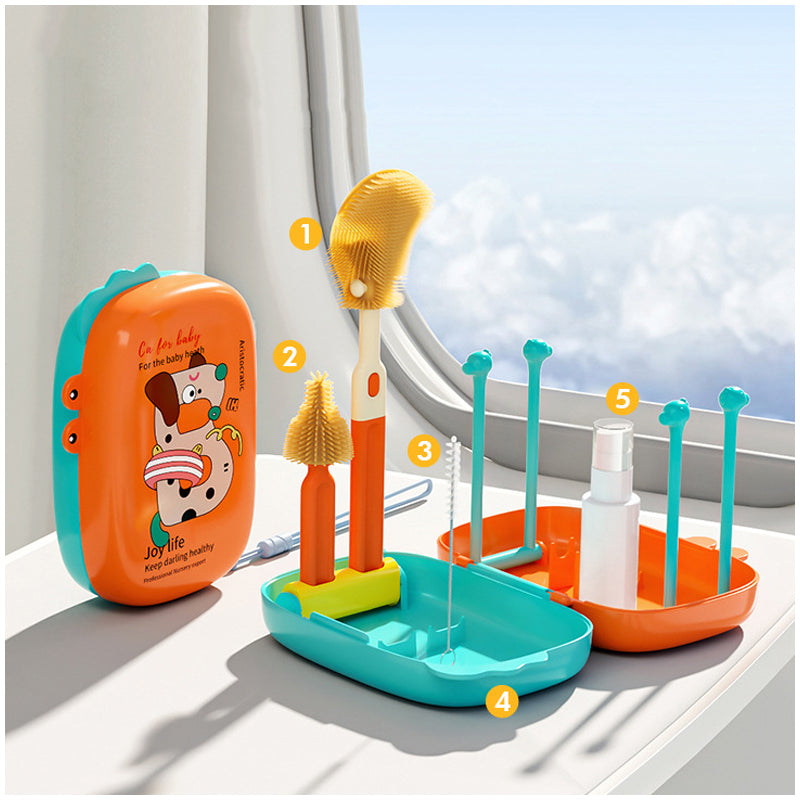 Eco-friendly Water Bottle Brush Cleaner Tool Sets Kids Portable Foldable Milk Bottle Cup Dryer Holder